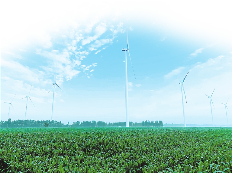 濮阳市积极开发风能资源,风电发展步伐不断加快。图为华能濮阳县500兆瓦风电场。 濮阳县委宣传部供图