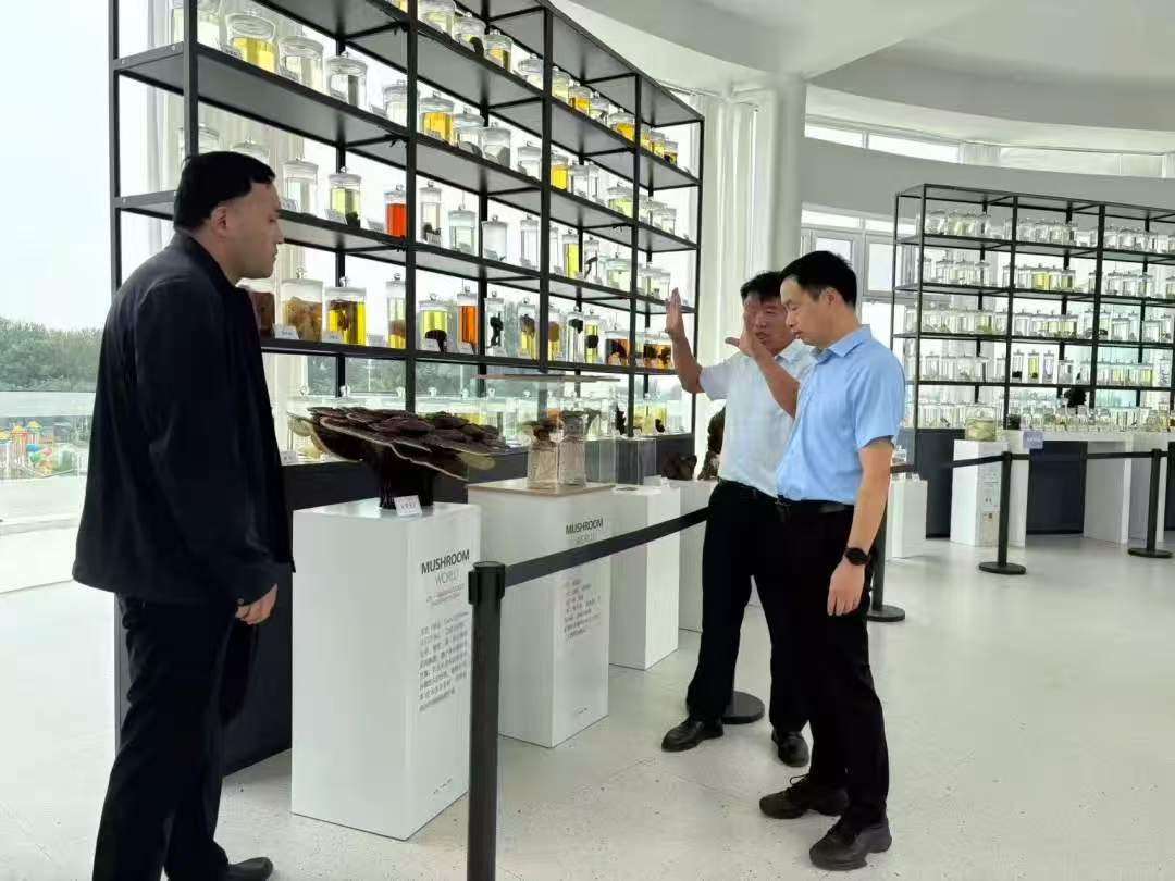 孟令涛一行先后赴丰蕈生物科技有限公司、科普教育长廊及蘑菇博物馆实地参观走访。丰蕈生物科技有限公司引入智慧菌棚、物联网温控等前沿农业科技,实现菌菇培育从传统经验化向科学标准化转变,大幅提升菌菇产量与品质;依托濮阳市茶树菇栽培工程技术研究中心,加强食用菌生产加工技术研发,以科技创新带动菌菇产业规模化、高值化发展。科普教育长廊系统呈现了食用菌产业全链条,突出展示科技创新对产业的重塑作用。蘑菇博物馆集参观学习、动手实践、趣味探索于一体,通过3D蘑菇细胞模型、各类标本、主题绘画展及“奇幻蘑漾”图像等展示、互动,将抽象的菌菇知识转化为直观的视觉体验。