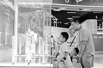 小朋友在宁夏科技馆参观航天科普展。