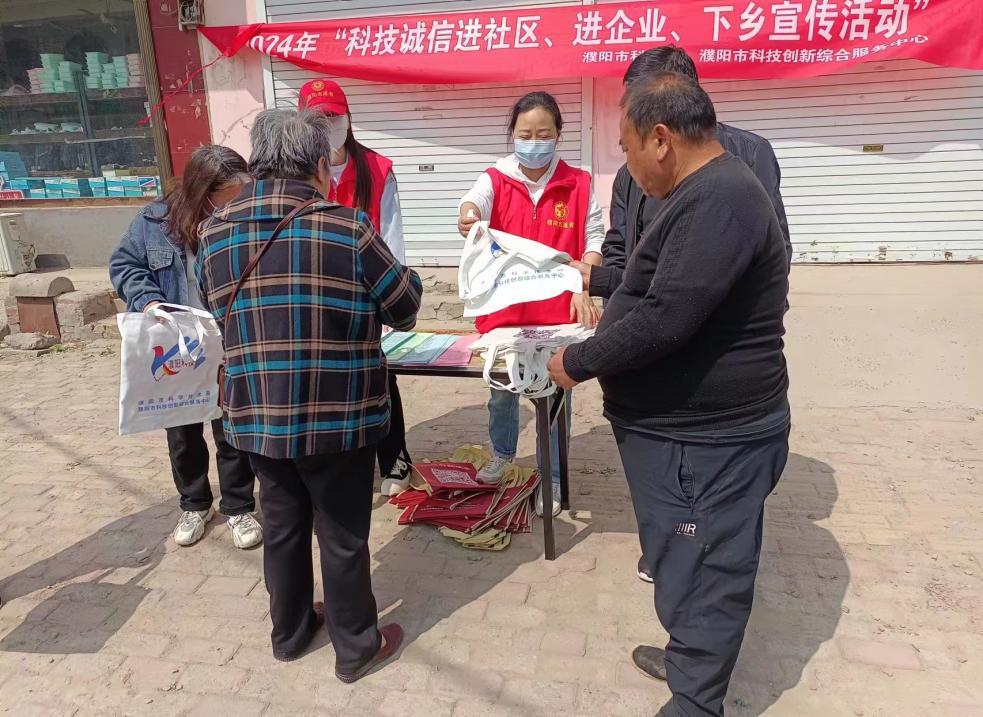 4月29日上午,市科技局组织局属单位市科创中心一行5人赴清丰县韩村镇开展以“科技诚信”为主题的科技下乡宣传活动。