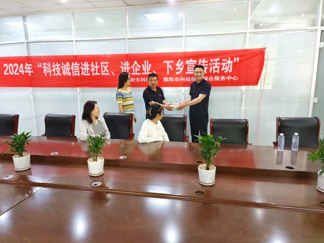 为全面推进全市科技诚信体系建设,营造科技诚信氛围,提升科技创新环境的整体质量,2024年5月15日下午,市科技局组织市科技创新综合服务中心工作人员赴河南龙都天仁生物材料有限公司开展“科技诚信进企业”宣传活动。此次活动旨在强化企业的科技诚信意识,为企业科技创新工作注入诚信力量,共同构筑全民诚信的和谐社会。