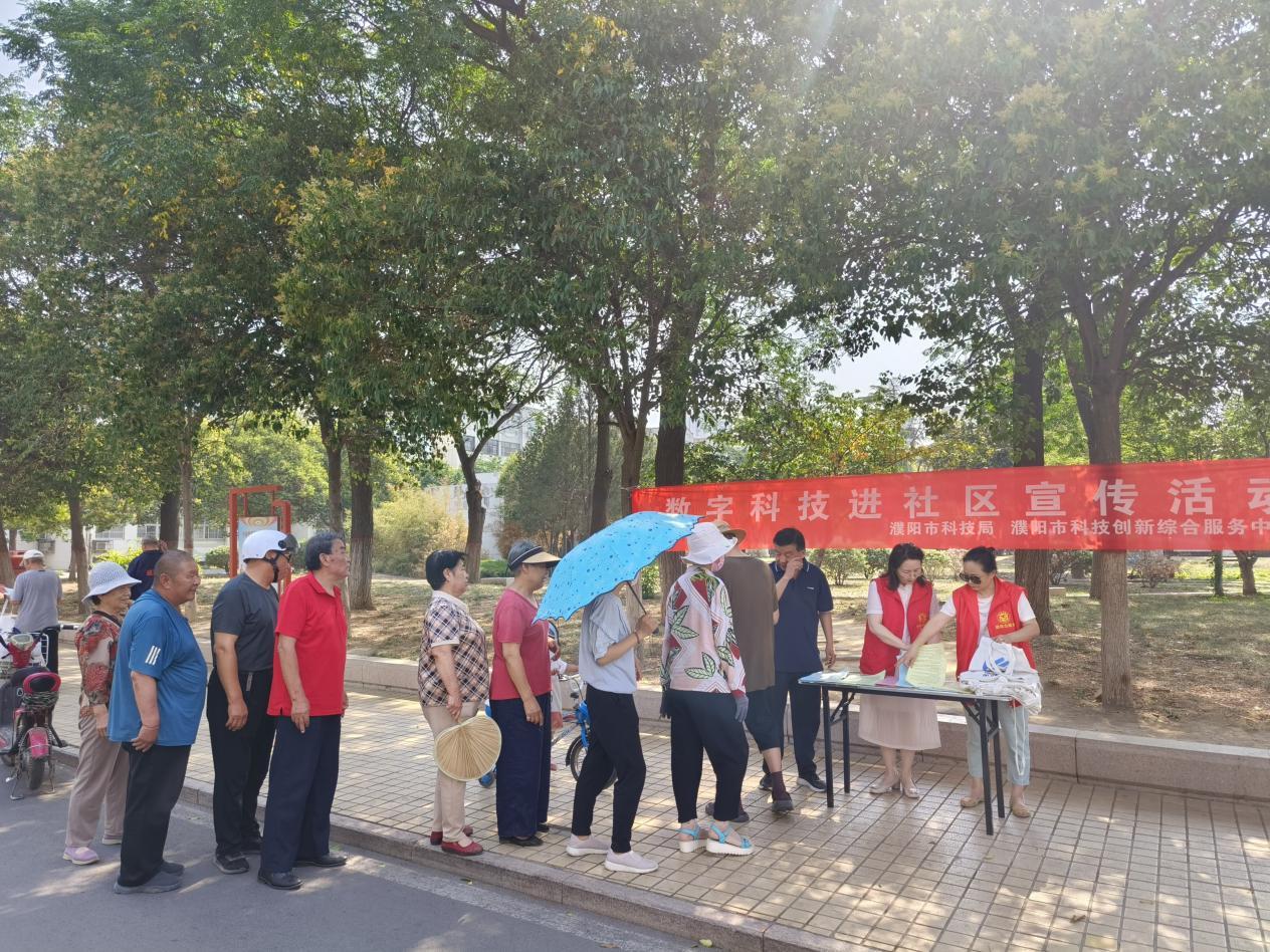 在科技飞速发展的当下,数字科技正以前所未有的力量改变着人们的生活。为深入提升城市居民数字化适应能力,推动居民共享数字红利,加强网络安全意识,营造全民数字素养与技能提升浓厚氛围,2024年6月20日上午,市科技局组织局属单位濮阳市科技创新综合服务中心一行5人,在盟城社区开展了“数字科技进社区”宣传活动。