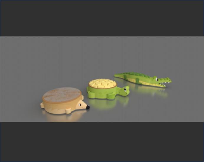 乌龟、刺猬、鳄鱼造型的座椅上布满经过处理过可以保障展项安全 性能的钉子 ,小朋友可坐在看起来很“可怕”的刺猬身上 ,坐上去后却 会发现不会有任何的危险。利用动物造型的座椅 ,带领小朋友接触有关 压强的相关知识。