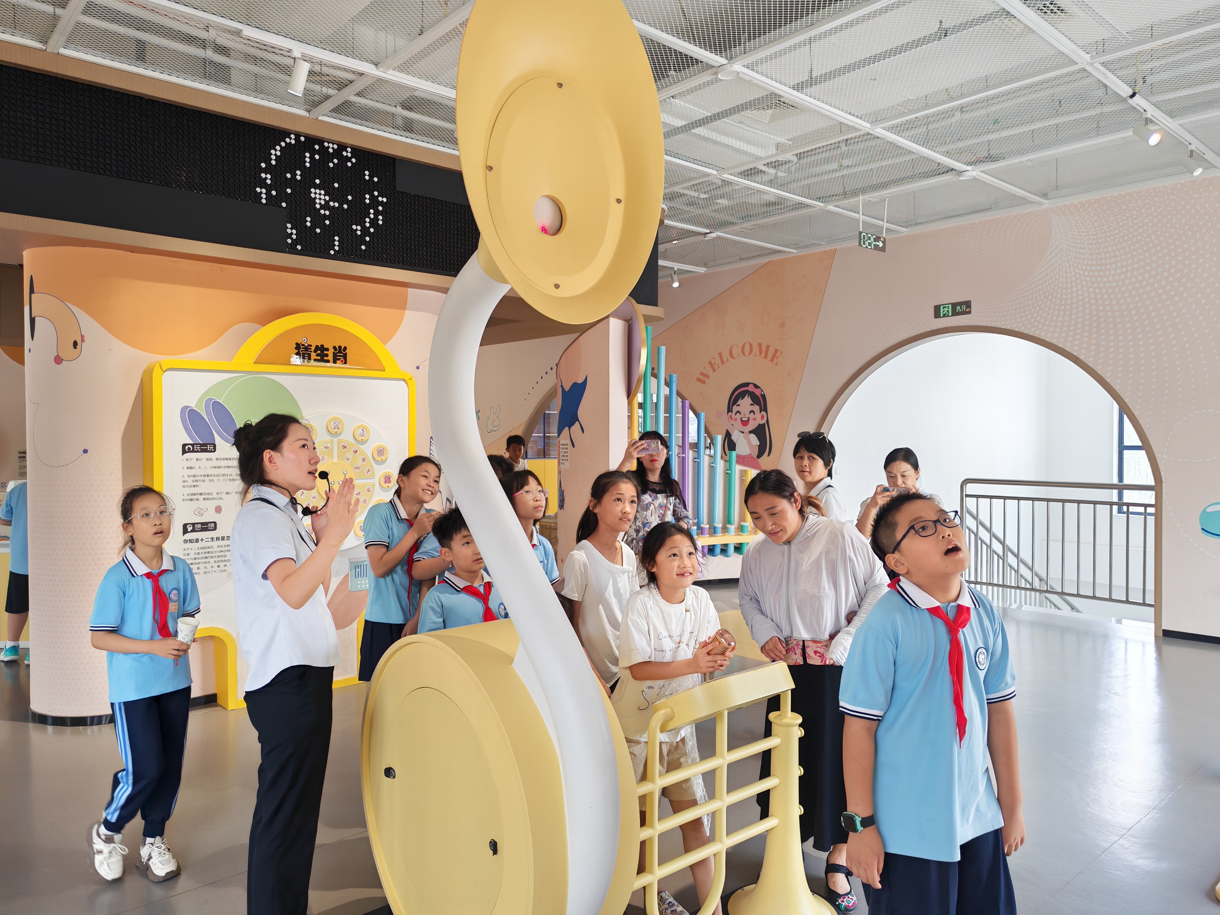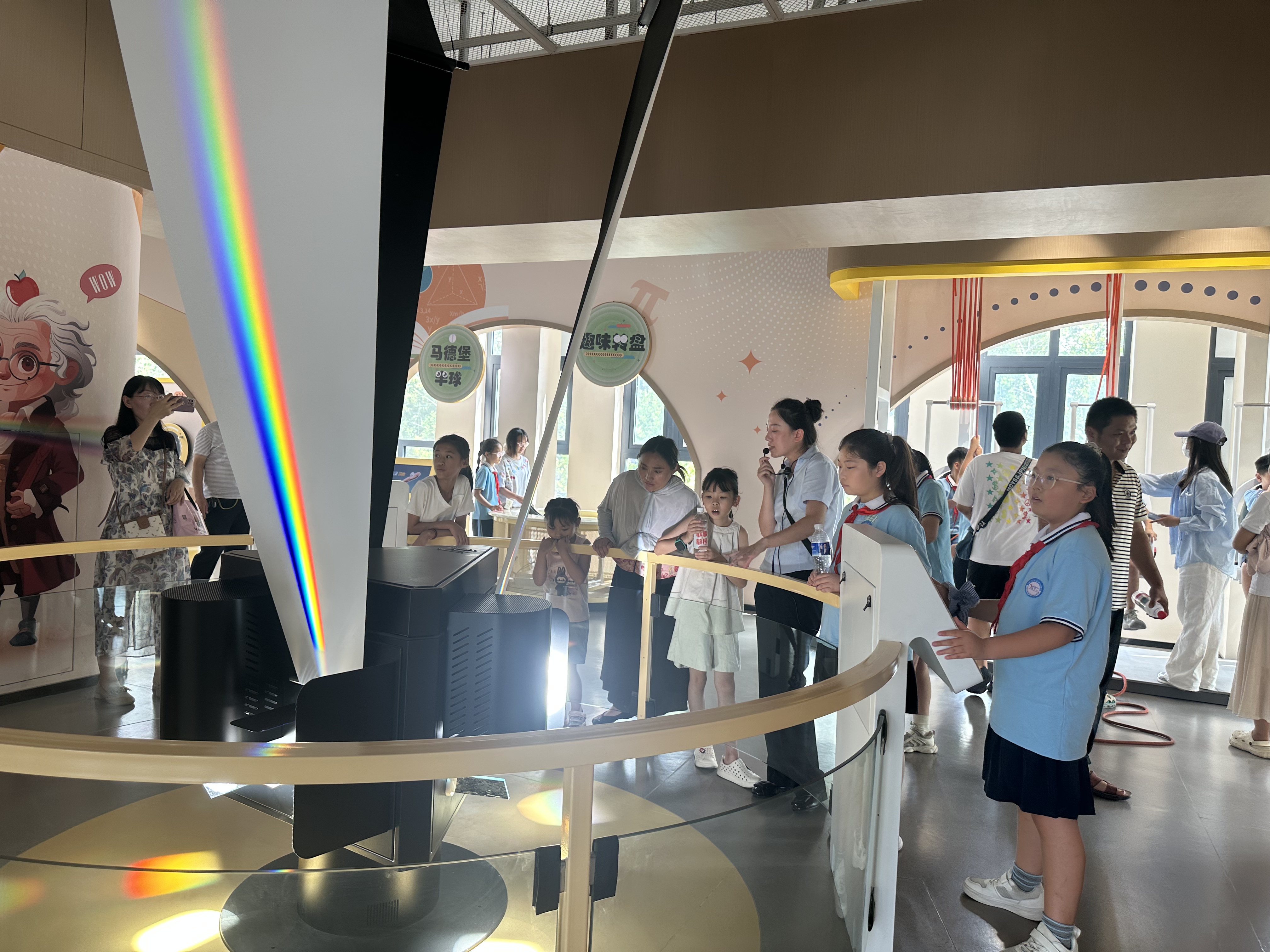 815下午,濮阳市科技宣传教育中心(科科岛)迎来了一场暑期充满探索精神的科普盛宴。来自戚城小学年级4)班的孩子们化身为小小科学探索家,带着对未知世界的好奇与渴望,踏上了一场融科技、自然与创新于一体的沉浸式学习之旅。在这场别开生面的活动中,同学们不仅亲身体验了前沿科技的魅力,更通过丰富多彩的互动展项,感受到了科学探索的无限乐趣。