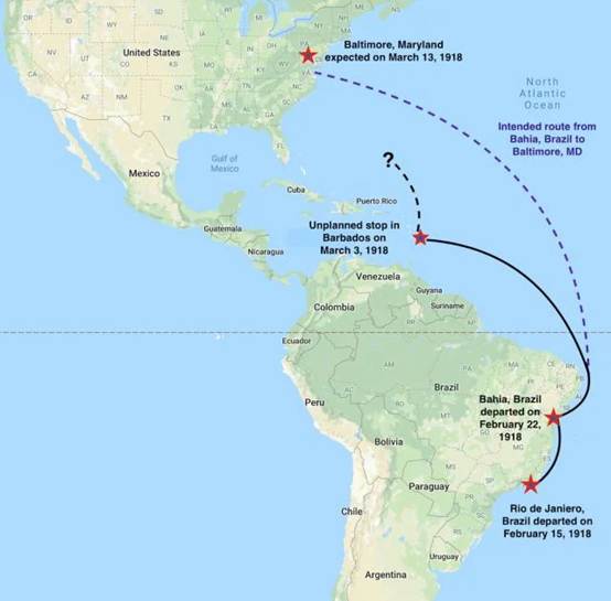 “独眼巨人号”原定路线与失踪地点(图源:U.S. Naval Institute)