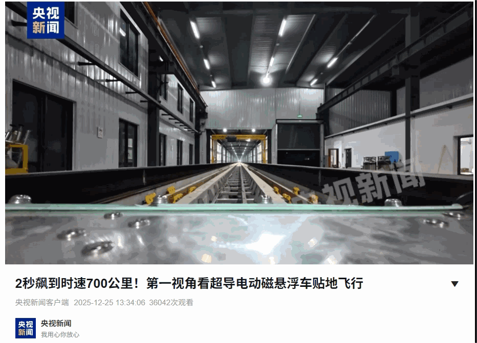 据了解,该团队自1980年开始深耕磁悬浮技术,先后支撑北京地铁S1线、长沙磁浮快线等四条磁浮线路的成功运营。今年17日,该团队在超高速超导电动磁悬浮系统试验中实现吨级载荷最高试验速度超过648公里/小时,刷新了当时该领域的世界纪录。时隔不到一年时间,该团队在400米磁悬浮试验线上,成功实现吨级载荷700公里/小时的最高试验速度并安全停车,再次刷新超导电动磁悬浮领域世界纪录。