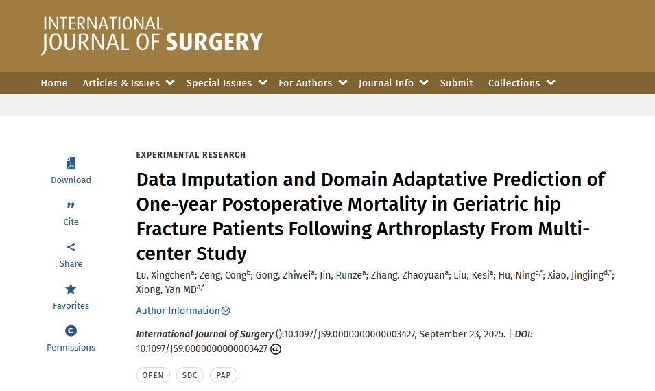 研究表明,机器学习不仅能有效处理临床数据缺失问题,还可通过领域自适应技术打破数据壁垒,建立的预测模型具备跨医疗中心应用的潜力。基于这一创新成果,研究团队进一步融合AI技术,成功开发出“大坪骨科老年髋部骨折手术风险评分系统5.0版(DOORS-GHF)”。该系统专门针对老年髋部骨折设计,弥补了传统评分系统病种泛化、预测效能不足的局限,可为围手术期临床决策与患者管理提供更精准可靠的支持。