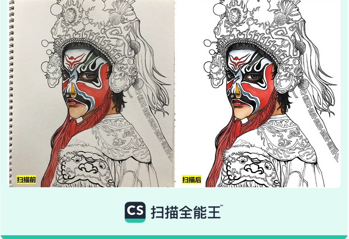 扫描全能王精准提取线稿。合合信息供图