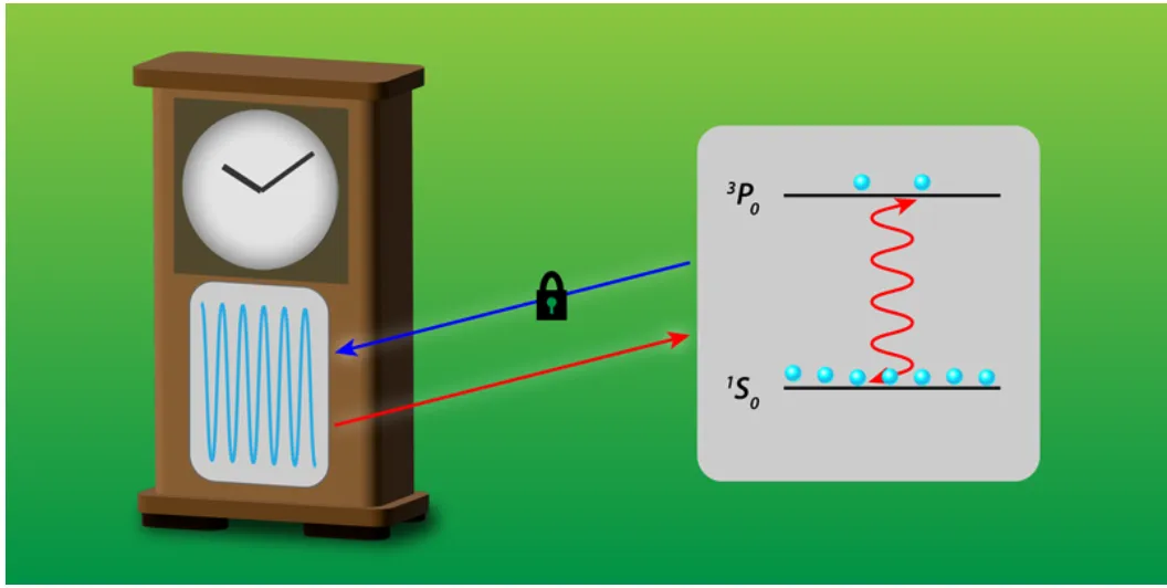 2锶原子在1S?3P?状态之间的跃迁作为光晶格钟的参考。当光信号与跃迁共振 时,其频率可以被非常精确地界定。