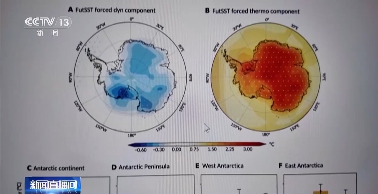 中国气象科学研究院全球变化与极地研究所所长研究员丁明虎:我们基于南极两百多个站的观测和我国第一代全球大气再分析资料,首次检测到了全南极出现增温的信号,过去四十年中南极增温0.12℃每10年,略低于全球平均水平,并且确认人类活动在其中有重要的贡献。