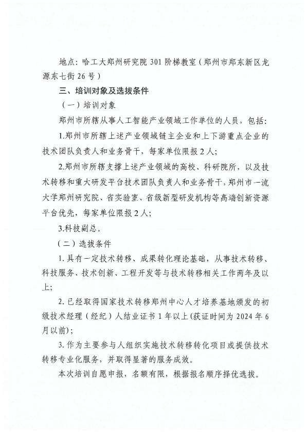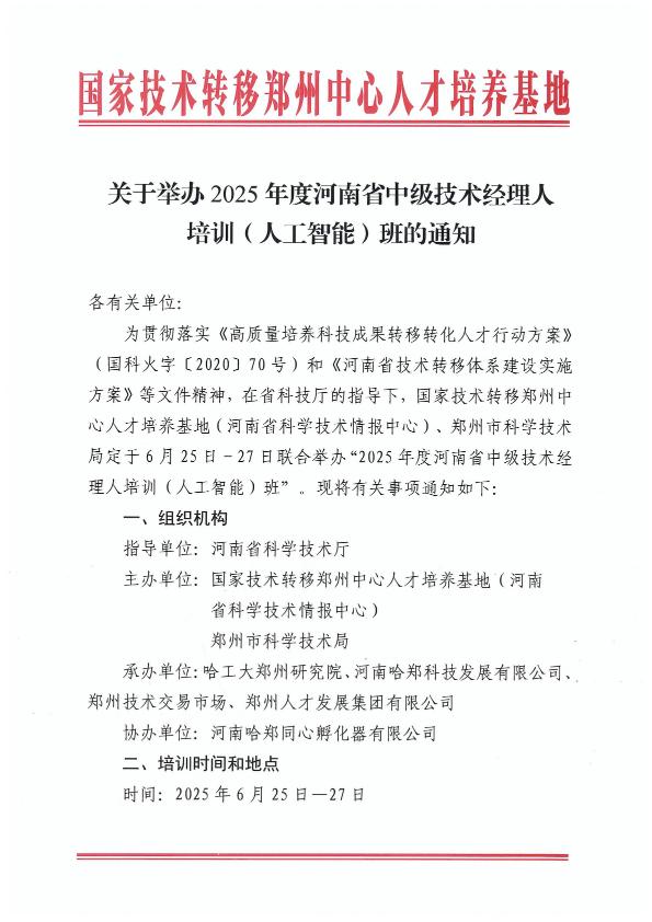 关于举办2025年度河南省中级技术经理人培训(人工智能)班的通知